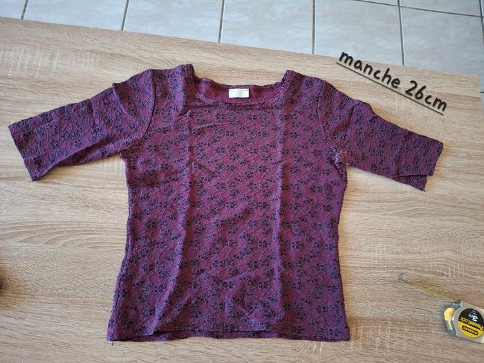 Tee shirt violet/prune promod Etiquette effacée Porté sur une taille 34 et taille 1.54m