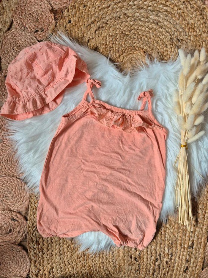 🧡 Ensemble barboteuse H&M + chapeau kiabi 12 mois