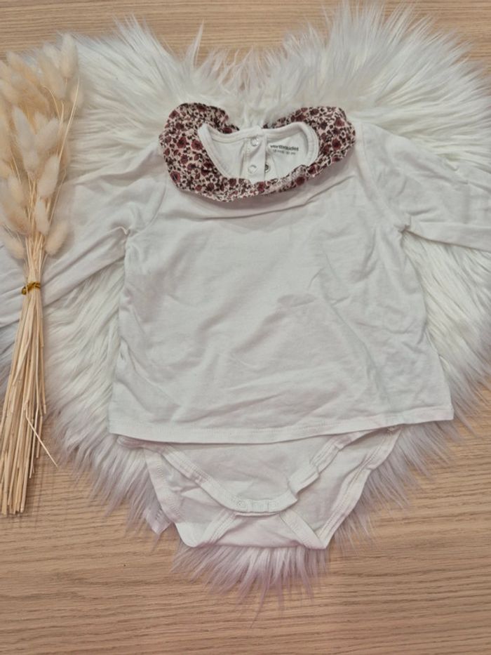 🤍 T-shirt body intégré à col fleuri Vertbaudet 18 mois - photo numéro 1
