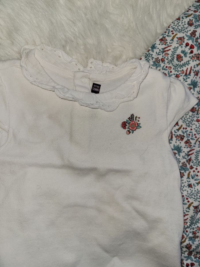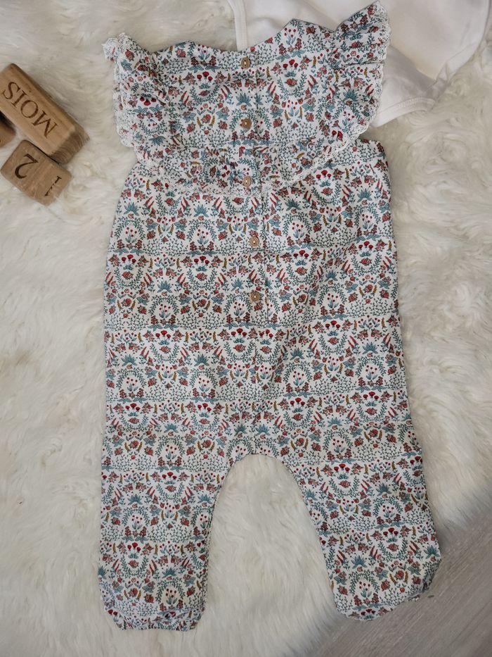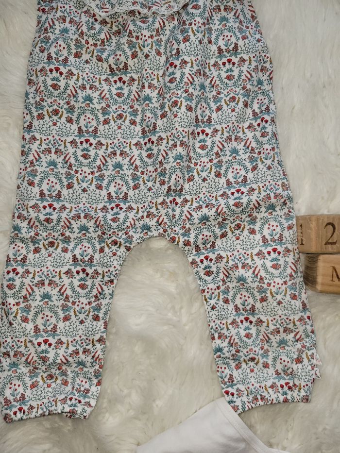 Ensemble salopette et body fleuri. Juste lavé. Taille petit