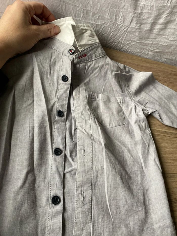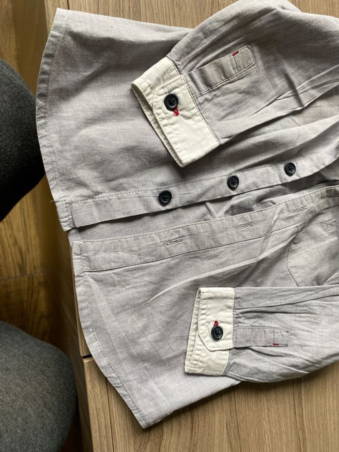 Chemise manches longues. Tâche sur l’arrière d’une manche niveau poignet Tout les boutons sont là. 86 cm Envoi du mardi au samedi