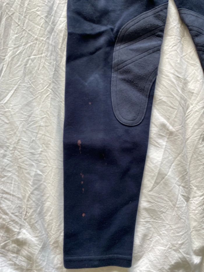 Pantalon d’équitation Tâches jambe droite sous bottes Se serre à la taille Élastique ok Attache ok Note 10 ans mais taille petit plutôt un 8 ans