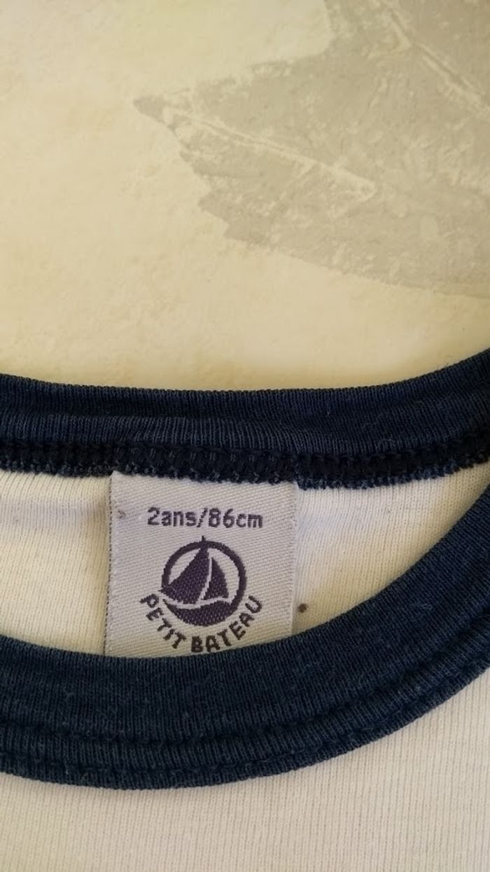 Tee-shirt blanc acec encolure marin. Manches longues. Petit bateau