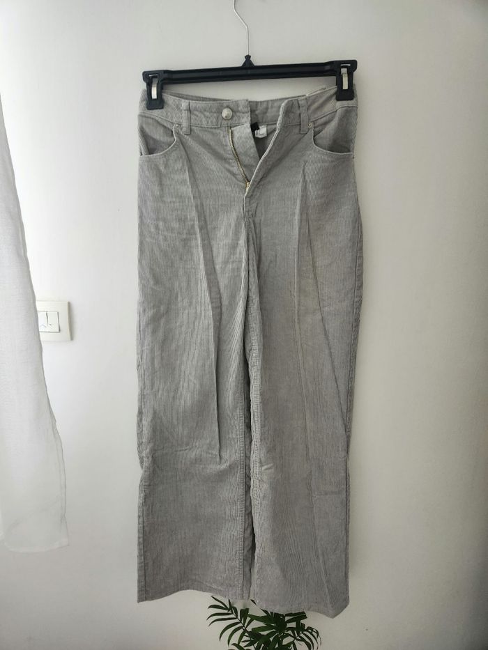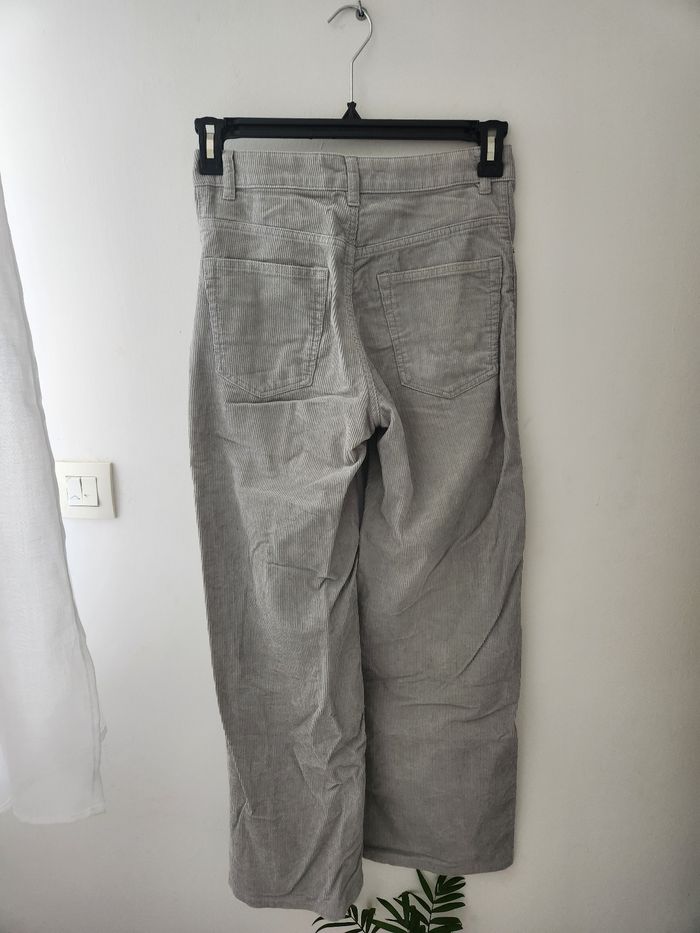 Pantalon large gris effet velours. Pantalon en très bon état, peu porté. Taille 32.
