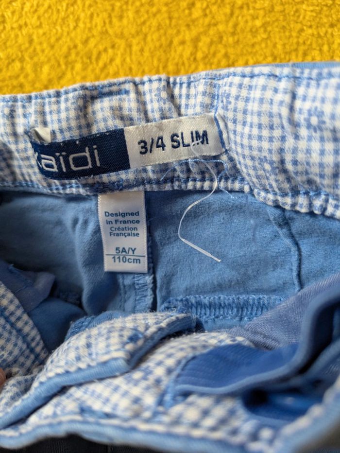 Pantalon bleu 3/4 slim Taille 5 ans Marque Okaïdi 📢 Réduction activée pour les achats en lot ⚠️ Envoi à partir de 3 euros 🛑 Envoi uniquement via mondial relay #5ansalinna #enfantalinna Plusieurs articles sur mon compte : vêtements femme, lingerie, vêtements bébé, pyjama, body, chaussons, haut ML et MC, gilet, Tee-shirt, collant, pull, jupe, robe, pantalon, legging, bonnet, grenouillère, bijoux, chaussures, accessoires, jouets, produits de beauté, divers articles... Toutes marques.