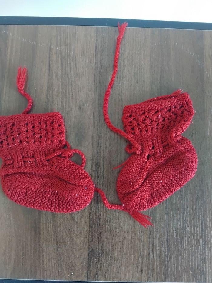 Ensemble tricoter main le gilet ouverture bouton avec le bonnet et les chaussons. Correspond à du 12 /18 mois. Peut présenter des bouloches. #fille18moisnade3033 #fille12moisnade3033
