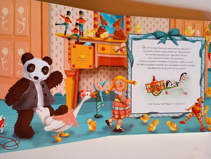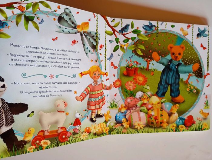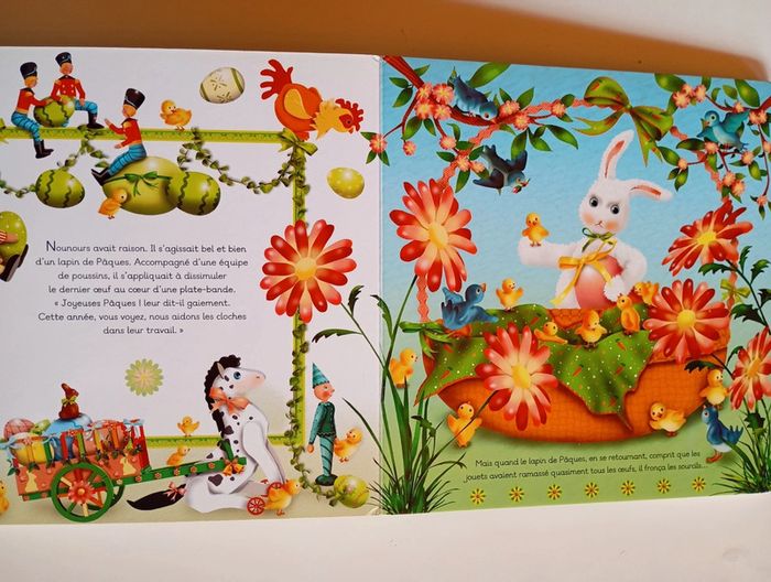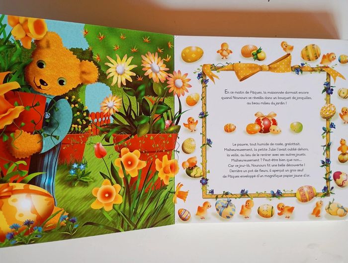 "Venez vite ! J'ai vu quelque chose de fabuleux dans le jardin ! Dépêchez-vous !" Chuchotait Nounours aux jouets de la maison. Ce printemps-là, les jouets décidèrent de partir à la chasse aux oeufs comme les enfants. Mais certains n'étaient pas d'accord... Livre tout carton Éditeur ‏ : ‎ Quatre Fleuves 22 pages Âge de lecture ‏ : ‎ 1 - 4 ans Dimensions ‏ : ‎ 20 x 1.7 x 20.5 cm Livre en très bon état Je vends d'autres livres sur Pâques #phil_peg_pâques #paques #oeufs #chasse #quatrefleuves