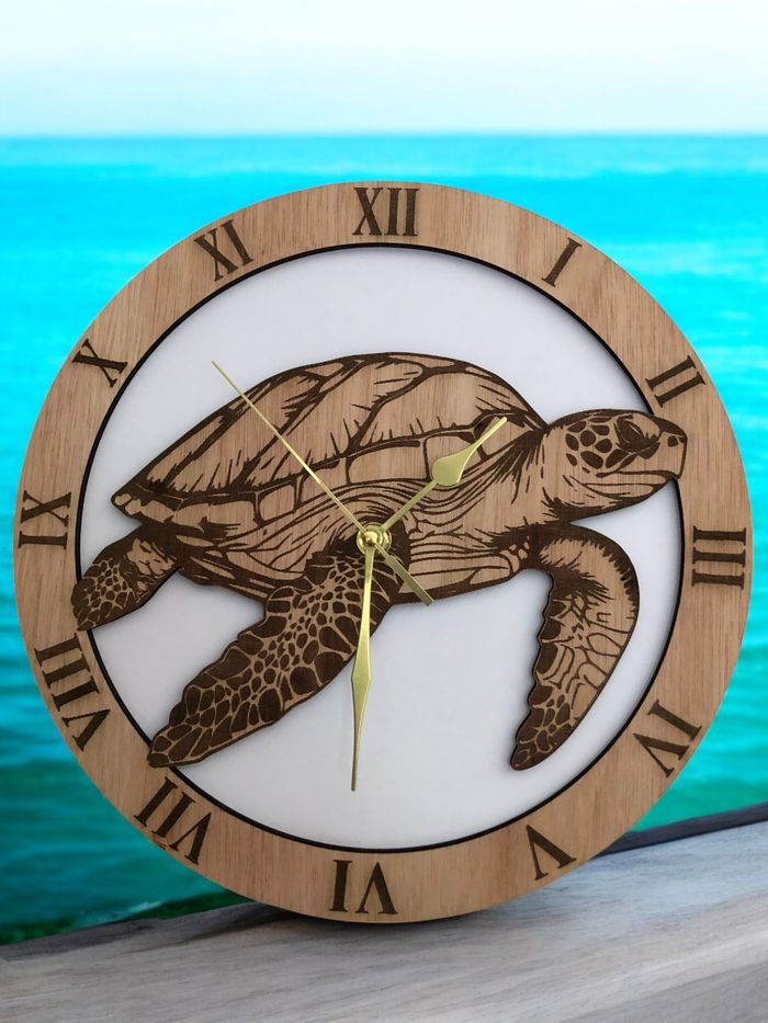 Horloge en bois tortue neuve avec mécanisme silencieux, diamètre 29 cm, fabriqué en découpe laser