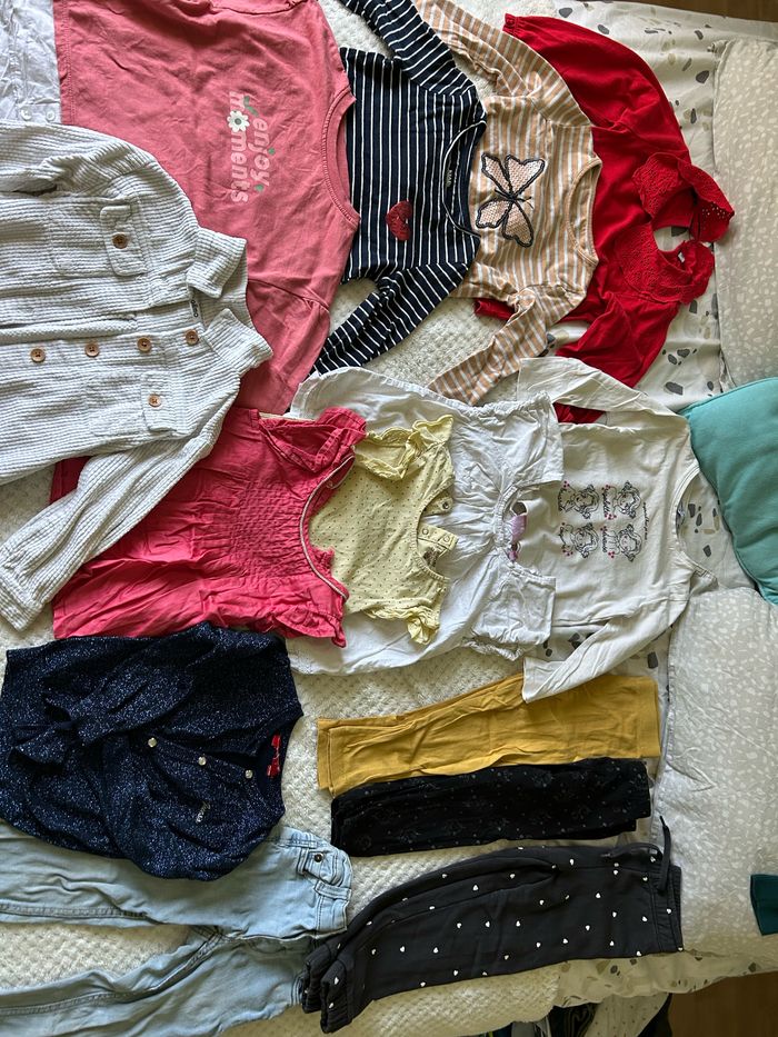 Vend lot de vêtement de fille de 3 ans en bon état général. Le lot se constitue : 5 tee shirt manches longues Une veste blanche 1 gilet Guess 2 leeging 1 jean skinny 3 tee shirt manche courte