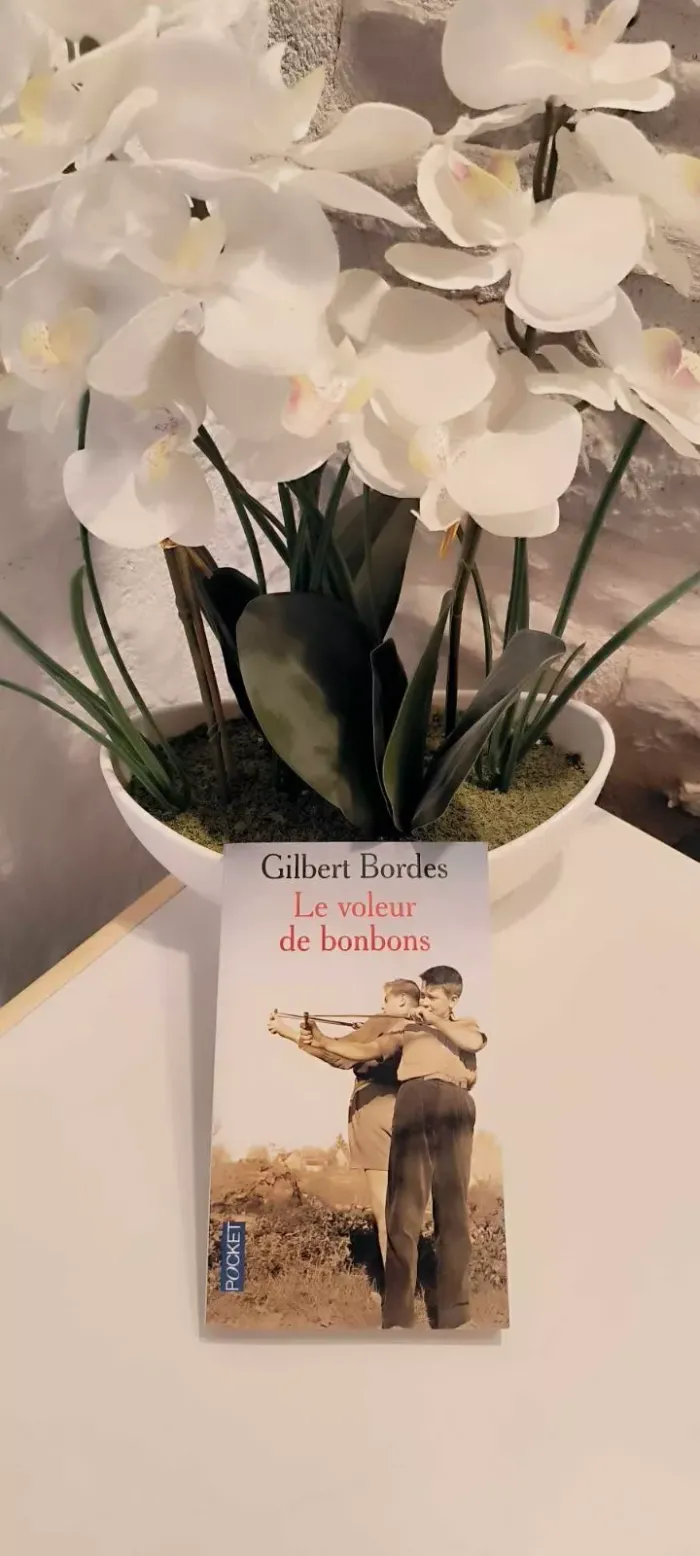 Douze ans, pas franchement beau, Matthieu ne fiche rien à l'école. À l'occasion, il chaparde. " On n'en fera jamais rien ", se lamente sa grand-mère. Tout le village est bien de cet avis. Arrive Manon. Ils ont le même âge. Lui, éclatant de santé . elle, gravement malade : leucémique. Pour amener un sourire sur ses lèvres pâles, il lui fallait des cadeaux : des bonbons, un collier, un briquet - tous volés, bien sûr. Et, parce que Marion lui a dit qu'elle se sentait mieux lorsqu'elle avait communié, un jour il va trop loin. Le ciboire et les hosties disparaissent. Scandale dans ce hameau de Corrèze ! Cinq années dans un centre d'éducation surveillée, et Matthieu est libre. Il n'a cessé de penser à Marion . il la retrouve. La maladie n'a pas abandonné la jeune fille . Matthieu ne l'abandonnera pas non plus... Biographie: Membre de l'Ecole de Brive, romancier des situations contemporaines (La Nuit des hulottes, Ce soir il fera jour, La neige fond toujours au printemps), Gilbert Bordes s'est aussi révélé grand romancier de l'Histoire avec Les Frères du diable (Robert Laffont, 1999) et Lydia de Malemort (Robert Laffont, 2000). Le Voleur de bonbons est son quatorzième roman.