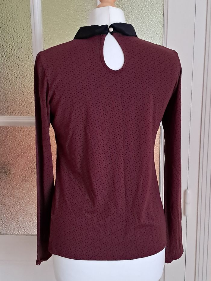 Blouse bordeaux à motif noir et col Claudine noir Taille M
