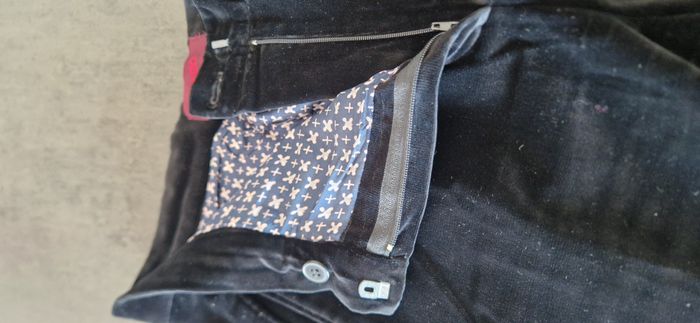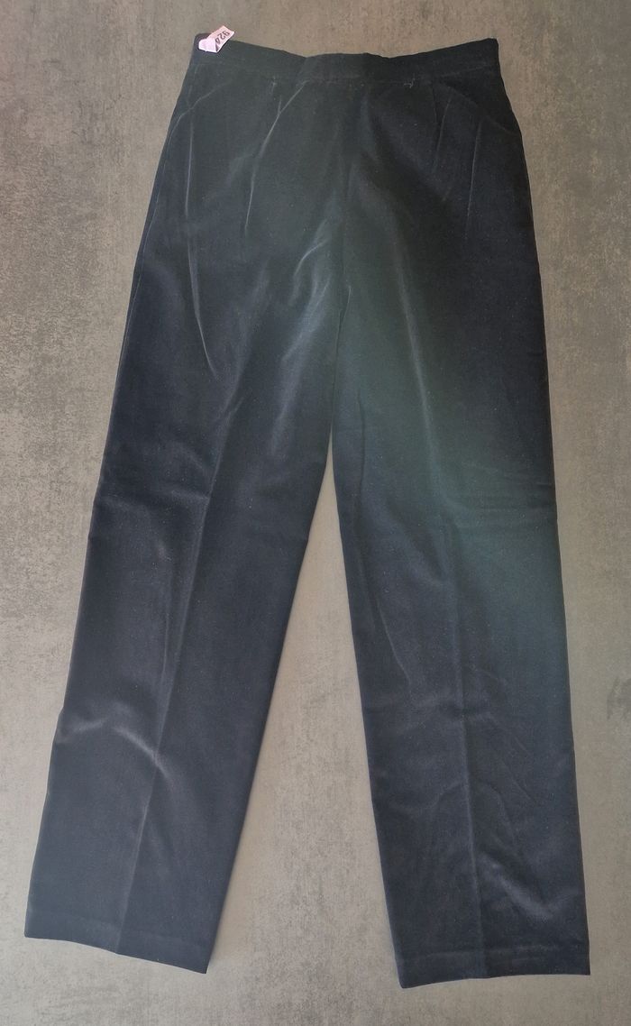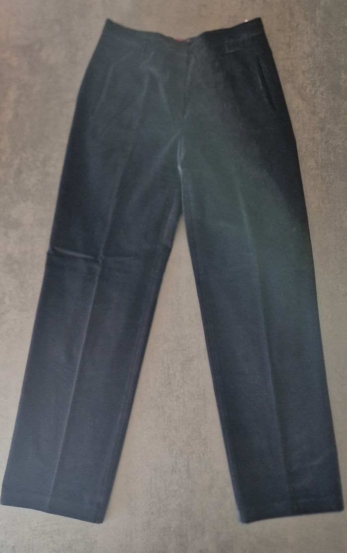 Me contacter avant achat SVP. Magnifique pantalon femme Kenzo, noir, en velours, coupe droite, fermeture Eclair + 1 bouton + 1 crochet - poches passepoilées sur les côtés - Très beau velours ras - doublure jusque sous les genoux - Taille 42 (mesures à plat de la taille 38 cm, de la longueur totale 111,5 cm et de la longueur à partir de l'entrejambe 85 cm sur les photos) - Dessiné par Kenzo fin 20e siècle - Excellent état, rien à redire (et aucun retour accepté) (prix boutique entre 450€ et 490€, très belle opportunité) Autres photos disponibles sur demande sans problème.