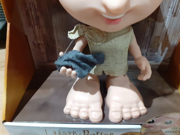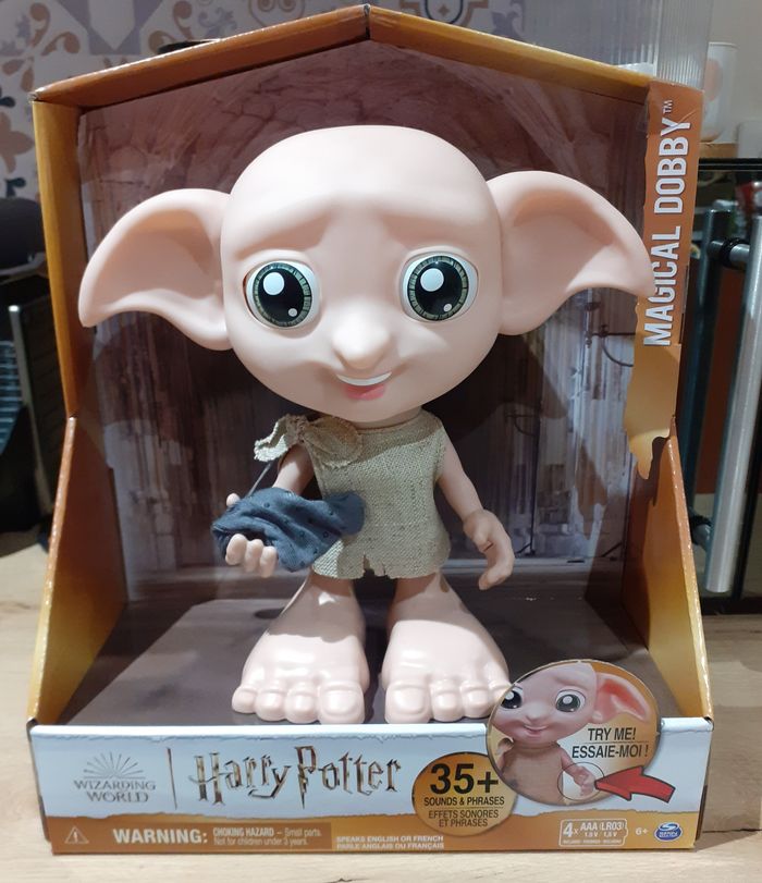 Je suis obligé de me séparer de ma collection et vous propose : Une Figurine de Dobby, l'elfe de maison de Harry Potter. En français et en anglais. Plus de 50 son et interaction. Bouge les yeux, les bras et les oreilles. Fonctionne avec 4 pile AAA fournie. Dimension hors boîte : 30,5cmx25,4cmx 12,1cm. Il est encore dans son emballage d'origine, acheter en 2023 et exposer en vitrine. Envoi rapide, soigné et sécurisé.