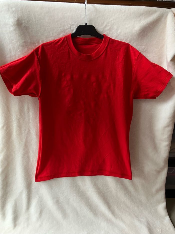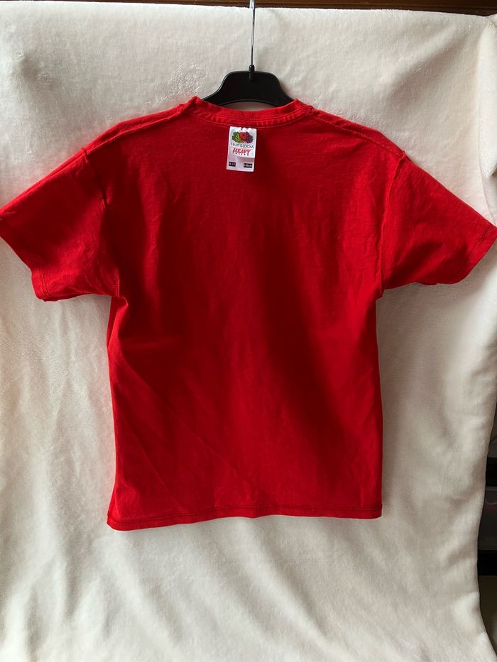 T-shirt rouge mixte Fruit of the Loom 9/11 ans (140 cm) ~ 100 % Coton ~ Non porté mais il a 2 auréoles côté gauche vers l’omoplate; ce n’est pas parti au lavage, mais c’est pas hyper visible, le coloris du T-shirt prend l’avantage ~ Vendu 1€ symbolique ~ Envoi soigné, dressing varié et % activé sur les lots.