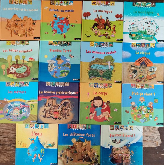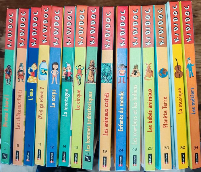 Vends lots de 15 livres Kididok en très bon état et bon état, car il y'en a 3 avec des imperfections ( voir les dernières photos) et quelques coins légèrement abîmés