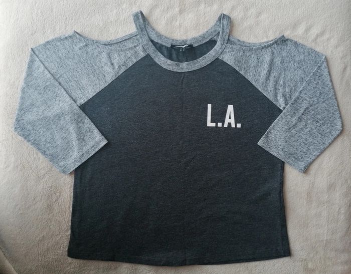 Vends tee-shirt jennyfer manches 3/4, épaules dénudées, en bon état