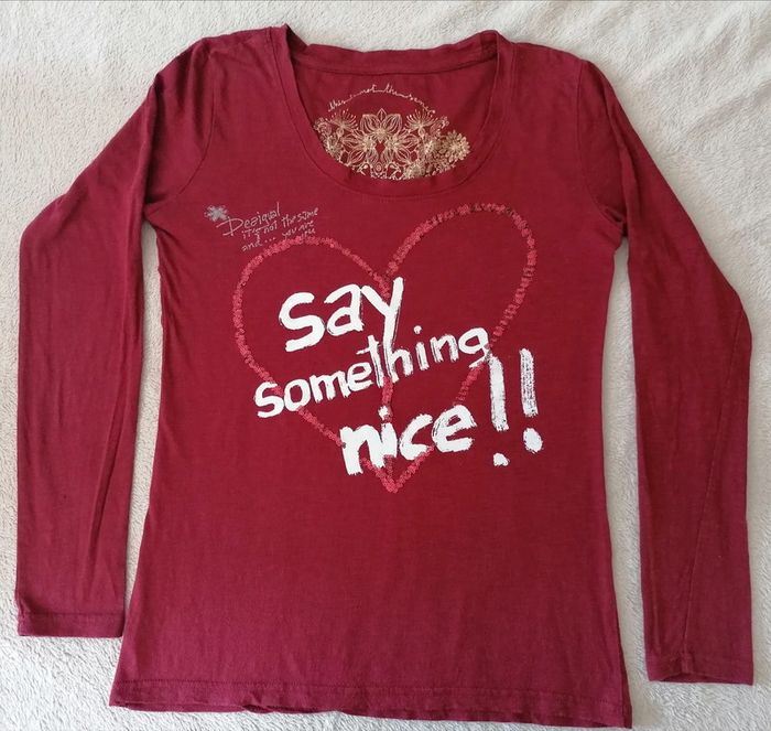 Vends tee-shirt en bon état, excepté un petit accroc à l'arrière d'une manche ( voir photo) d'où le prix...
