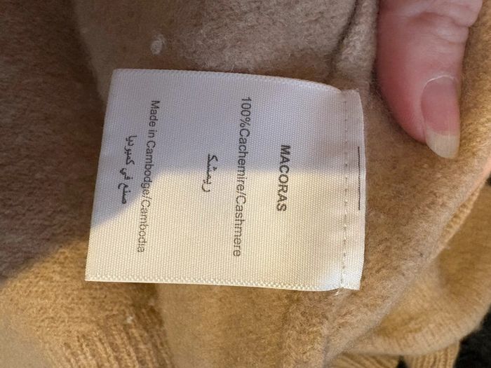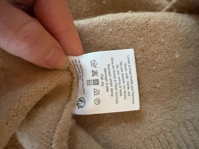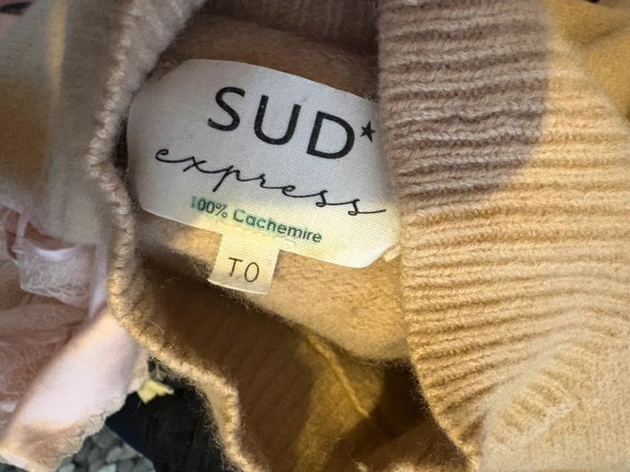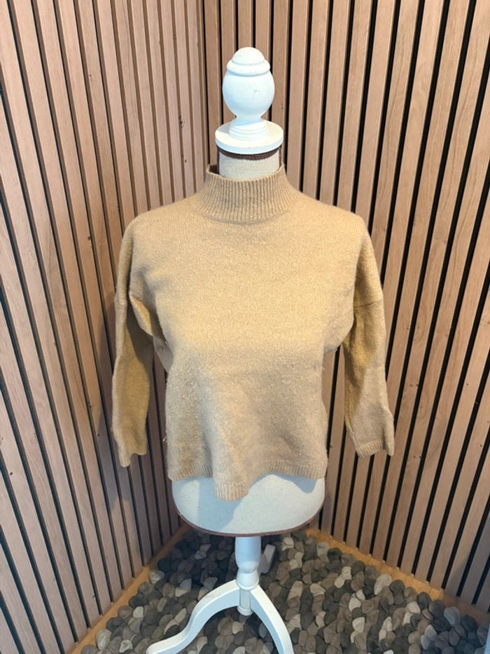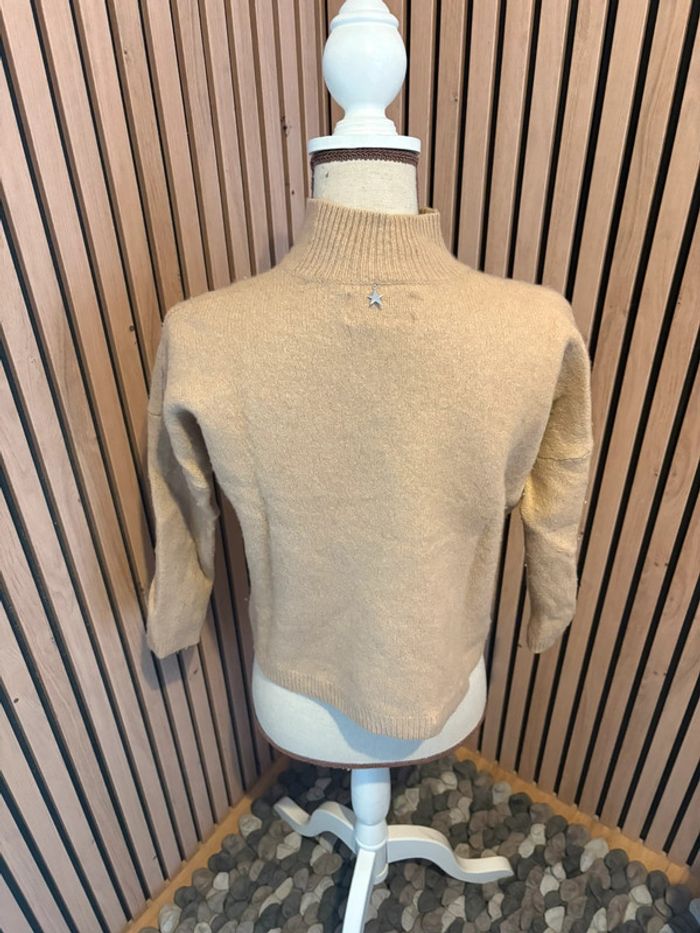 Taille 0 (équivalent 34) Pull court / manche 3/4 / col cheminée Cachemire Beige Quelques bouloche Sud Express