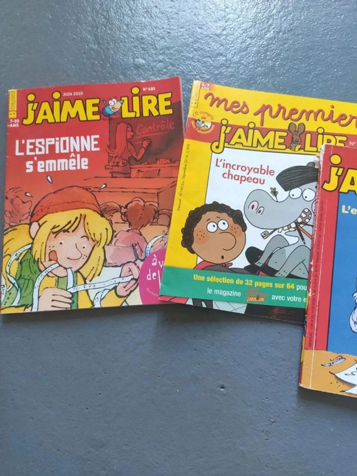 Un numéro de J'aime lire de 2010 en très bon état, deux numéros en état moyen de 2010 et 2002, 2 jeux ont été fait sur l'un des numéros. Avec un numéro de Mes premiers J'aime lire de 2014
