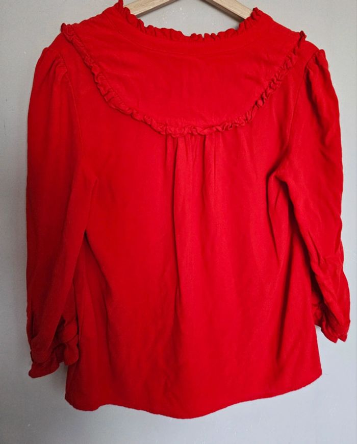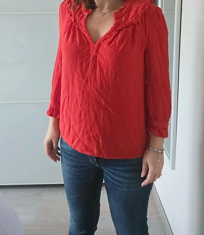 📌Lot 20% de remise dès 5 articles Blouse rouge, manche 3/4, détail froncé sur les bords, décolleté en v ➡️Largeur à plat sous les bras 50 cm ➡️Longueur 61 cm ➡️100% viscose ⭐Excellent état ✈Envoi rapide des colis 💗 Abonnez vous à mon profil, nombreux articles ajoutés régulièrement ! #laetitresors_blouse40 #blouse #rouge#manche #volant #chemisier #voile #bash #top #uni #chic #cocktail #bash