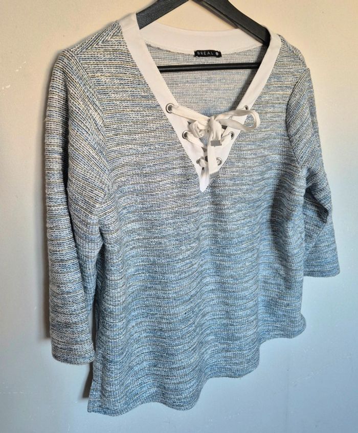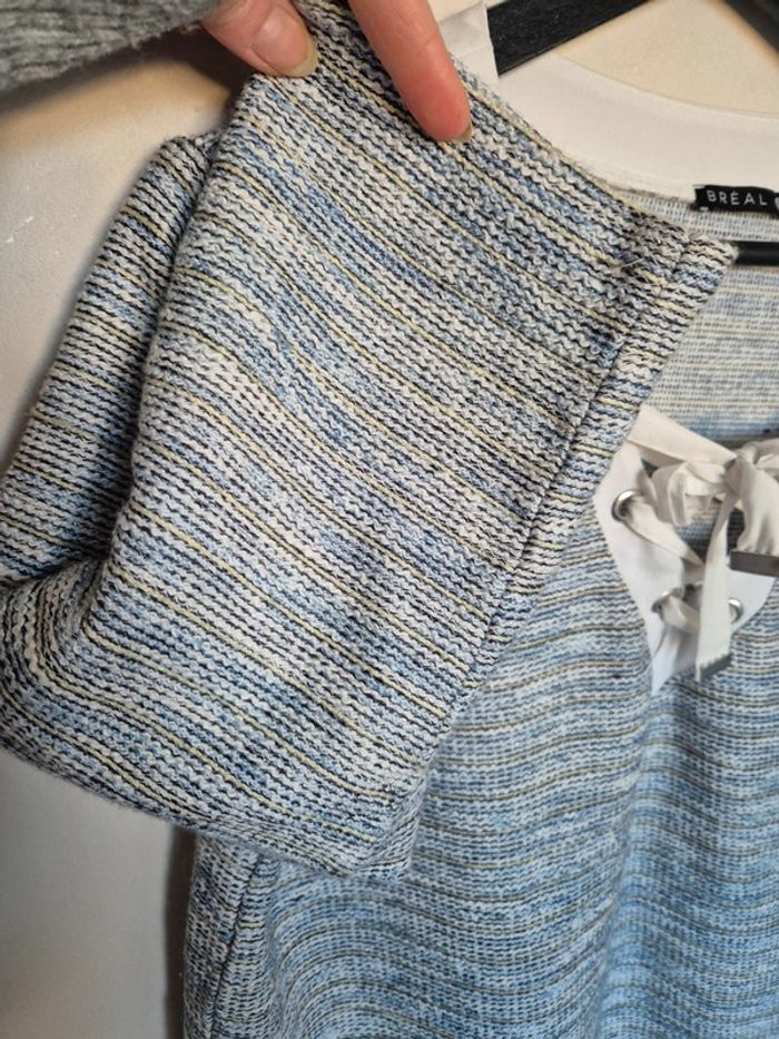 📌 Lot 20% de remise pour l'achat de 5 articles, suite ... Pull gris bleuté, manche 3/4, col et bord des manches blanc, lien à nouer sur le devant, ➡️Largeur à plat sous les bras  55 cm ➡️Longueur 65 cm ➡️ 49 % coton 26 % polyester 24 % acrylique 1 % de fibres métallique ⭐ Excellent état ✈Envoi rapide des colis 💗 Abonnez vous à mon profil, nombreux articles ajoutés régulièrement ! 🌸 Tapez Laetitresors pour voir mes annonces #laetitresors_pull44 #pull #gris #bleu #breal #bleuté #blanc #col #chemise #coton #breal #manche #laetitresors