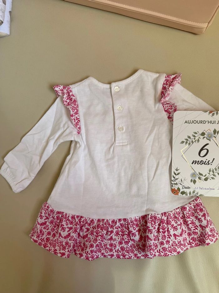 Robe bébé fille Manche longue. Parfaite pour le printemps Dessin chat / fleuri #vetementbebefille6moistces