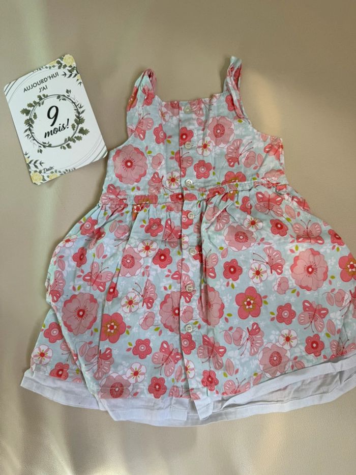 Robe d’été fleurie Bébé fille 9 mois Bouton dans le dos pour un habillage facile #vetementbebefille9moistces