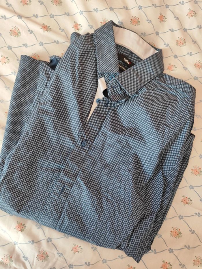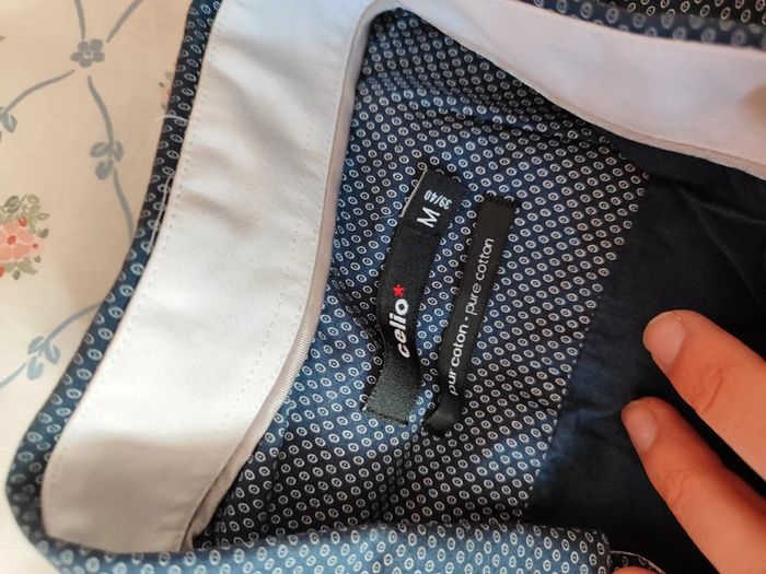 Chemise Celio pur coton Taille M Bleu marine imprimé Coupe slim