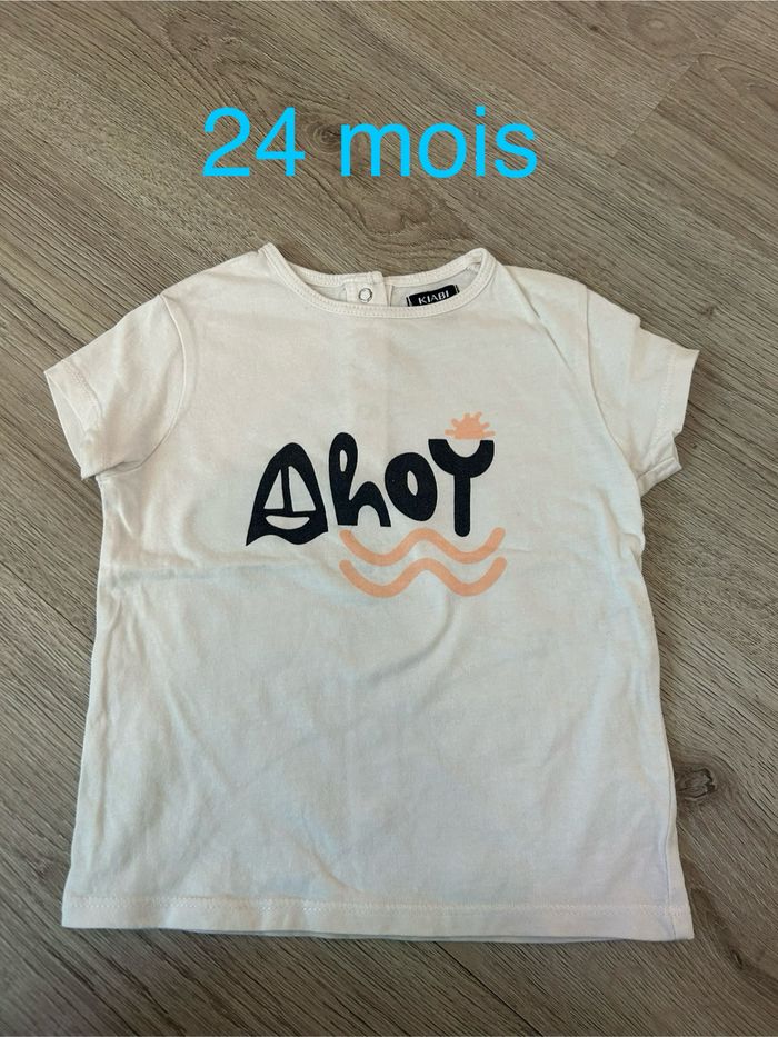 Tee-shirt manches courtes. Pressions dans le haut du dos. Taille : 24 mois. Marque : Kiabi