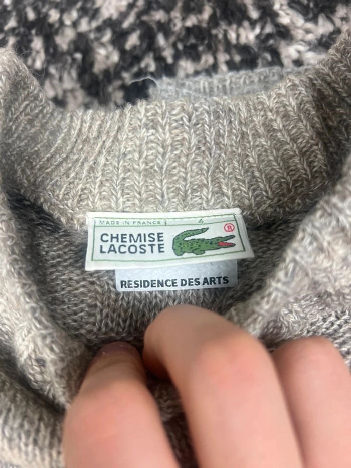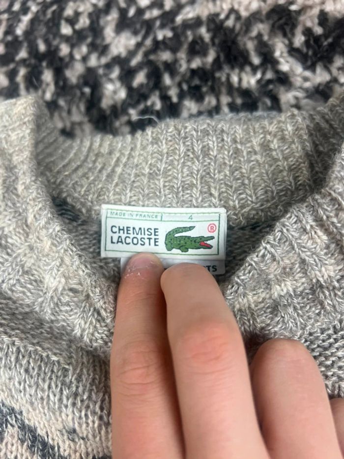 Pull Lacoste à motifs gris et blanc col rond taille M made in France  en laine - photo numéro 11