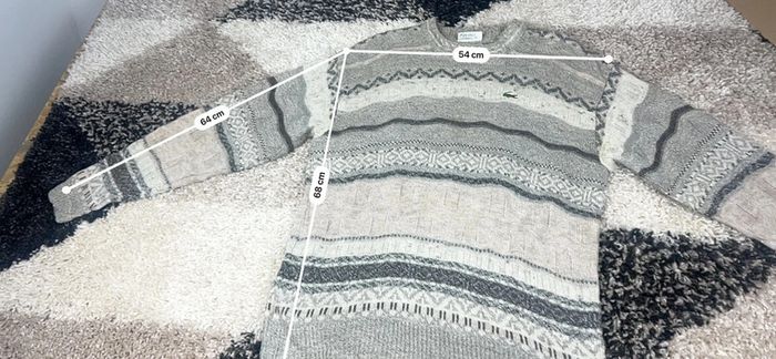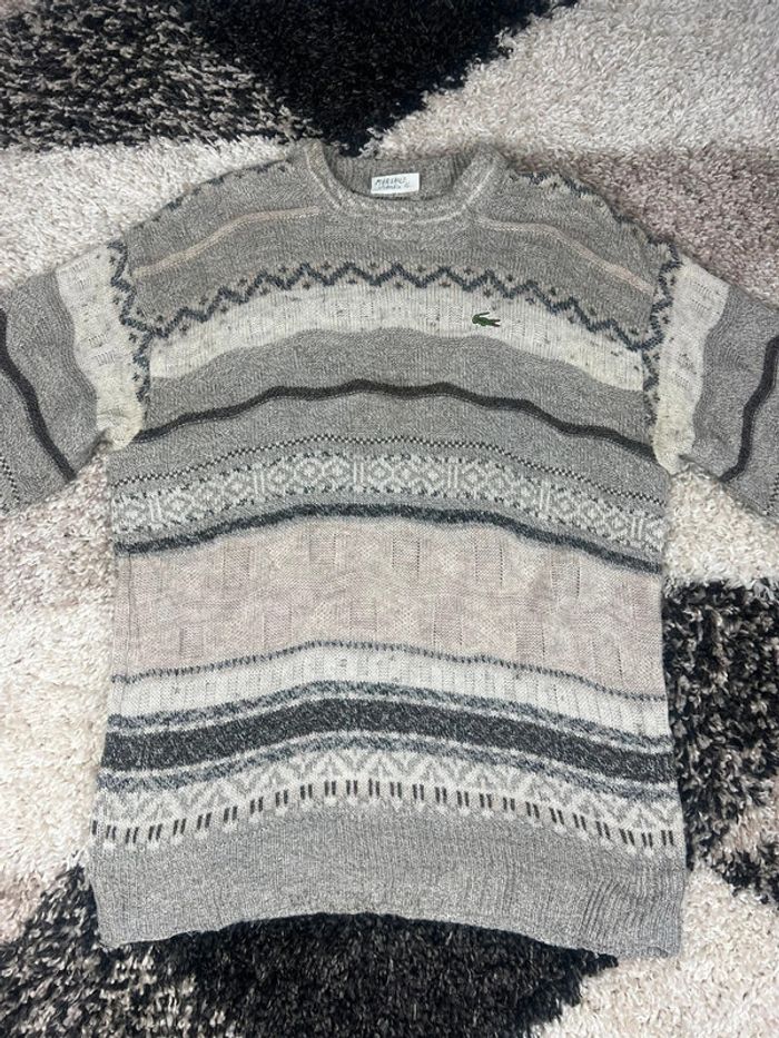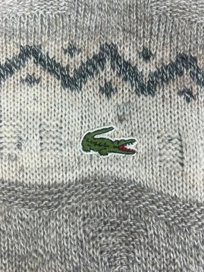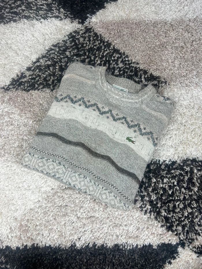Pull Lacoste à motifs gris et blanc col rond taille M made in France  en laine - photo numéro 1