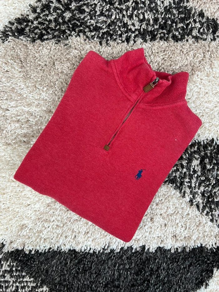 Half zip 1/4 de zip col camionneur Ralph Lauren rouge taille S style old money - photo numéro 1