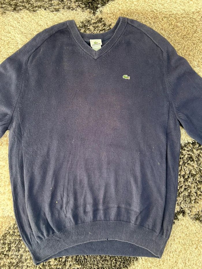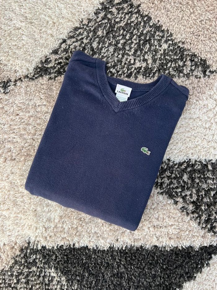 Pull Lacoste col V bleu marine en coton taille XXL made in Indonésie - photo numéro 1