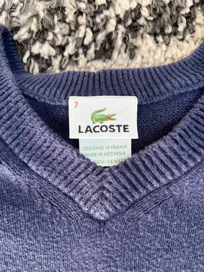 Pull Lacoste col V bleu marine en coton taille XXL made in Indonésie