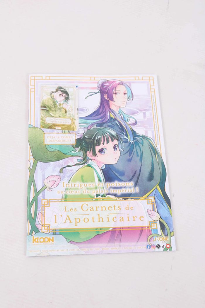 Je vends cet extrait du manga La Servante de l'empereur ! 🌸 🌟 Caractéristiques : - Titre : La Servante de l'empereur – Extrait - Éditeur : Ki-oon - Type : Shojo - État : Neuf - Édition : Standard - Synopsis : "Servir l’empereur, oui. L’épouser, non merci ! Poussée par son père à épouser un empereur de 5 ans, Linfa, 17 ans, refuse de sacrifier sa liberté. Son franc-parler attire l’attention de Soren, le régent, qui lui propose un rôle de gouvernante. Déterminée à protéger l’enfant, Linfa plonge dans les intrigues du palais pour l’aider à devenir un grand souverain." Possibilité de l'obtenir à 0.50e en cas de lot. D'autres mangas et extraits sont en vente sur mon compte ! Voici des tags pour vous aider à explorer mon dressing : #miyako_mangas #miyako_laservantedelempereur #miyako_shojo #miyako_kioon #miyako_animanga #miyako_lescarnetsdelapothicaire 🪷 📍Je privilégie Mondial Relay, car le point relais est à côté de chez moi. Les autres modes d’envoi sont désactivés. Cependant, si vous n’avez pas de Mondial Relay proche de chez vous, n’hésitez pas à me contacter, et je ferai de mon mieux pour trouver une solution d’expédition. Si vous avez besoin de renseignements supplémentaires, n'hésitez pas ! 😊 🌷 Tags : #manga #animanga #anime #collection #otaku #manganime #japanimation #onepiece #naruto #dragonball #bleach #hunterxhunter #fairytail #myheroacademia #jujutsukaisen #demonslayer #blackclover #fruitsbasket #sailormoon #nana #vampireknight #aoharuride #maidsama #kiminitodoke #berserk #deathnote #tokyoghoul #attackontitan #vinlandsaga #thepromisedneverland #rezero #swordartonline #tensura #mushokutensei #overlord #shieldhero #konosuba #oshinoko #evangelion #haikyuu #kurokonobasket #bluelock #kaguyasama #tomie #chainsawman #fullmetalalchemist #fma #onepunchman #tokyorevengers #codegeass #drstone #spyxfamily #yourname #toradora #steinsgate #erased #monster #higurashi #madokamagica #lescarnetsdelapothicaire #theapothecarydiaries