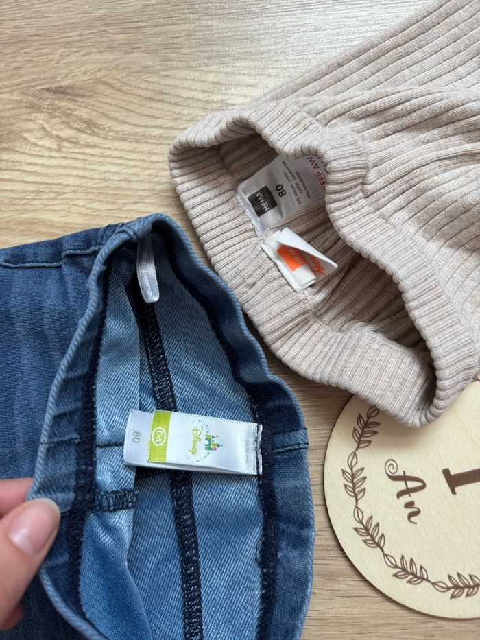 Lot de 2 pantalons/ leggings fille T80 Beige Hema Bleu Disney Baby Très bon état