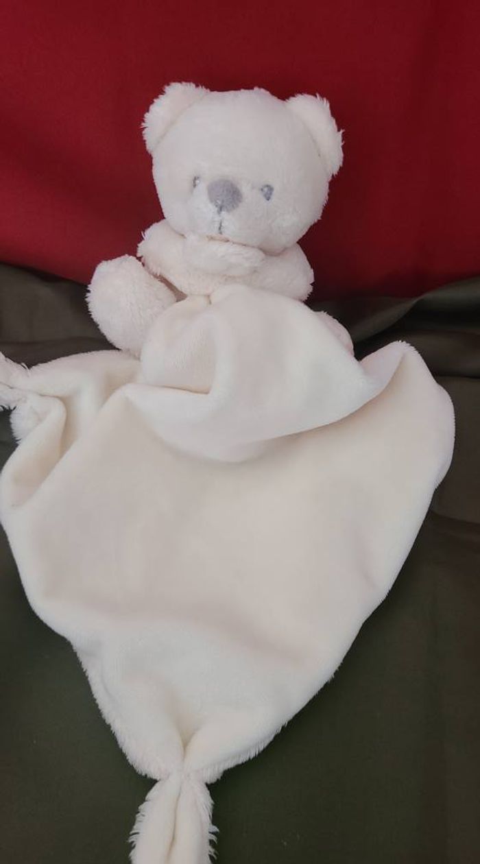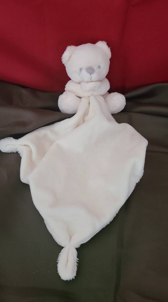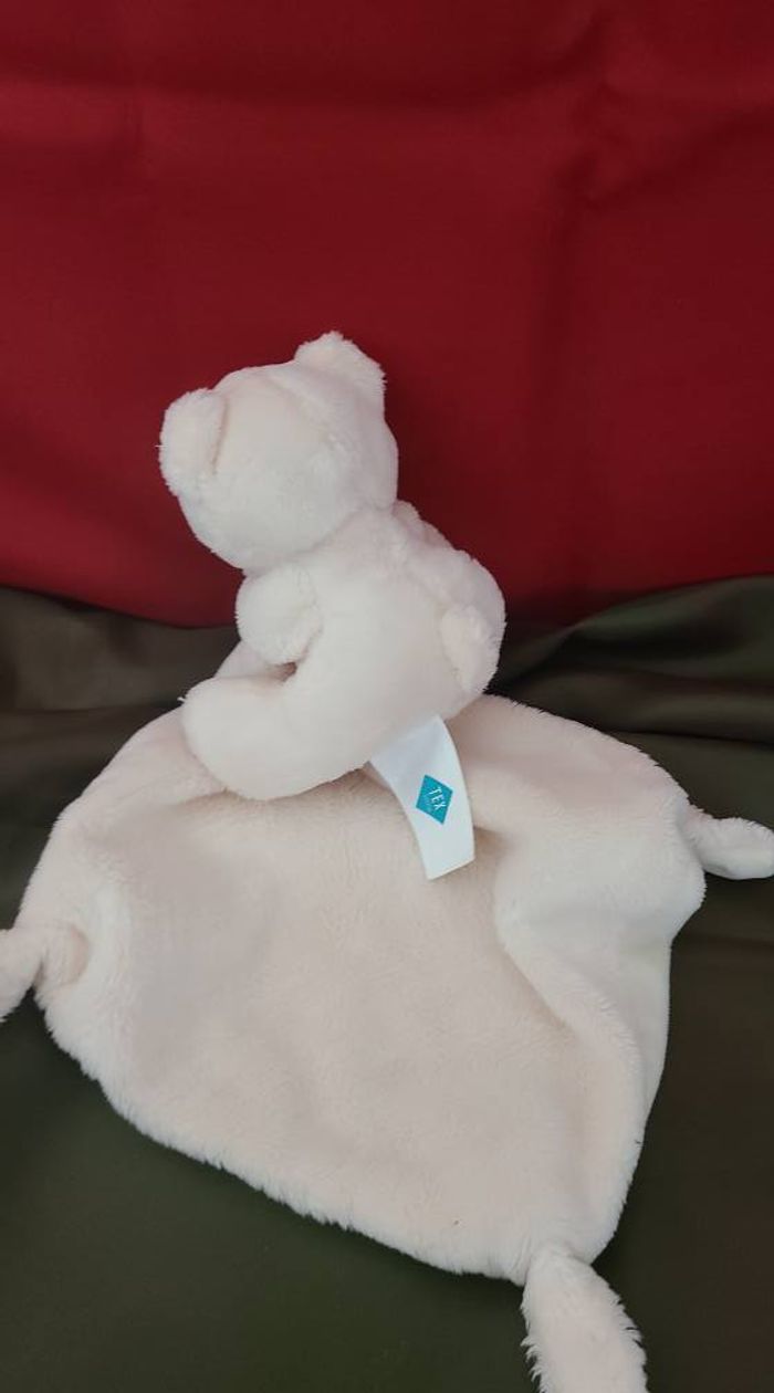 Doudou mouchoir ours TEX BABY losange blanc crème noeuds - photo numéro 1