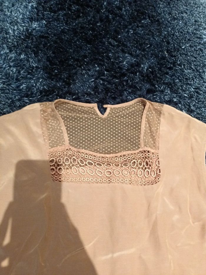 Tee-shirt, légèrement de dentelle au haut Fermeture avec un petit bouton à l'arrière Absence d'étiquettes #teeshirt