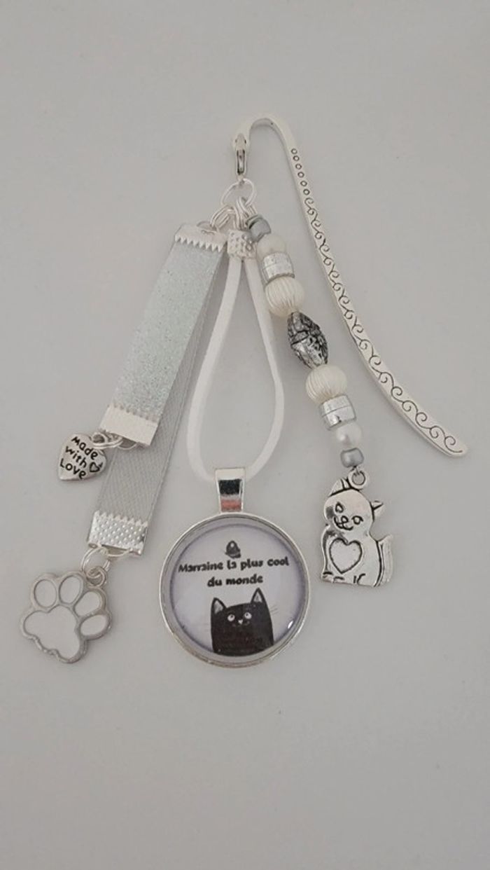 Cadeau marraine, bijoux de sac ou marque page " marraine la plus cool du monde"