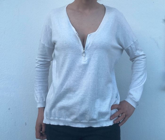 Un pull d’été fin le temps des cerises en très bon état avec petit zip d’ouverture sur le devant #Zip #Ruban #letempsdescerises #letempsdescerisesfemme #Taille38 #75Coton #Pull #finété #Pullfinletempsdescerises #Topfemme