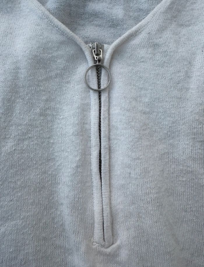 Pull été à zip le temps des cerises 75 % coton, ruban de la marque sur le côté