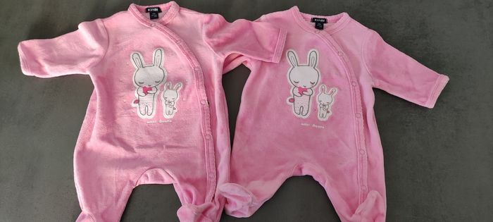 Lot de deux pyjamas identiques en 0 mois. Très bon état, très peu portés.