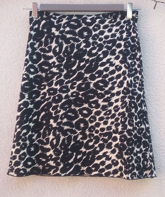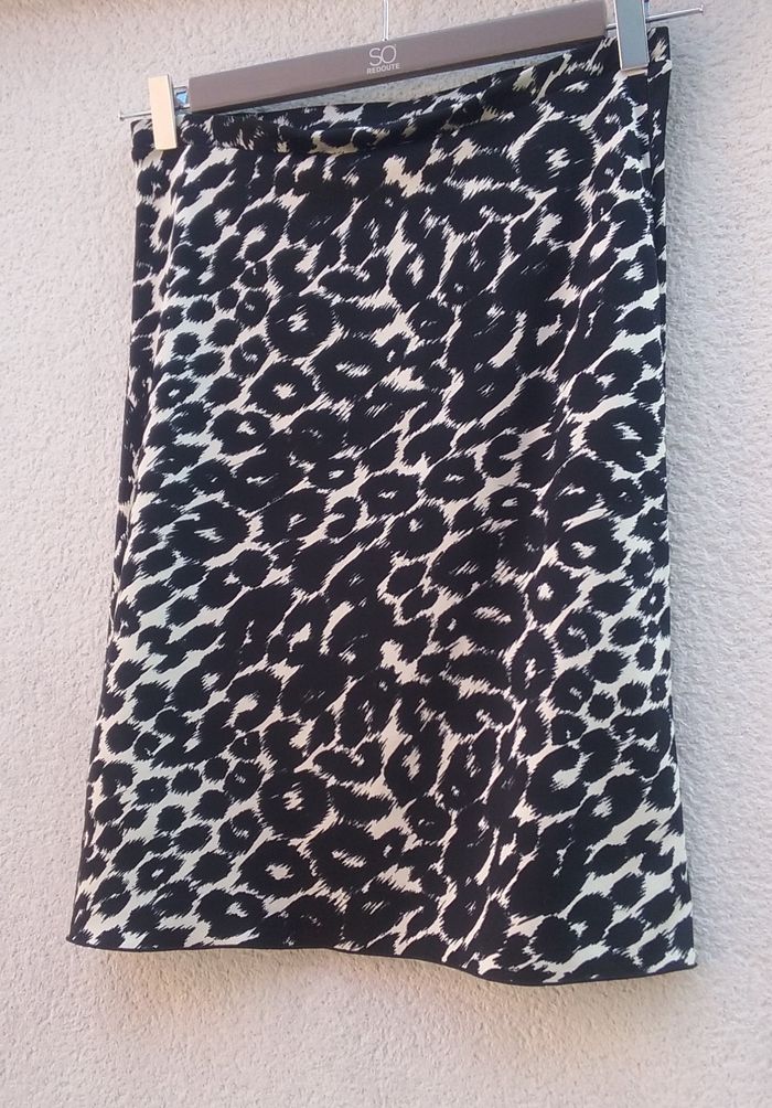 Jupe longueur genou légère et fluide, tour de taille extensible, coloris noir et crème, T36 mais convient également à un 38!