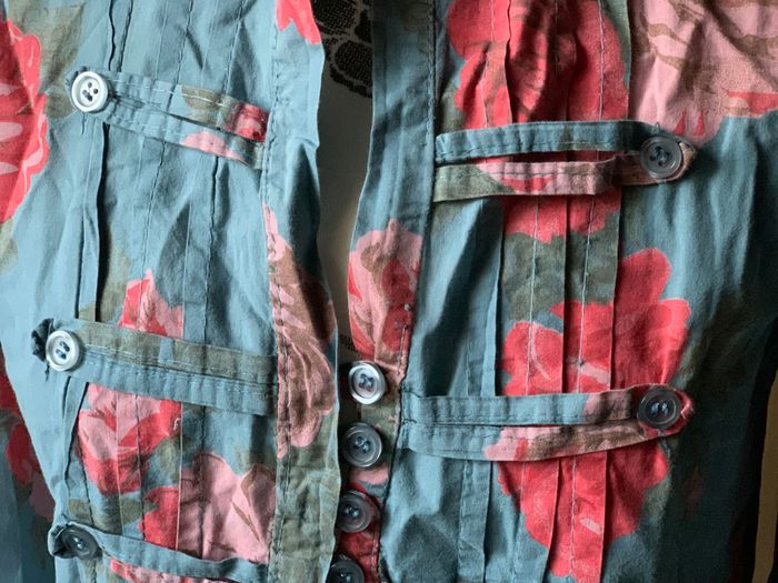 Blouse tunique bleu/gris fleuri rose taille 38/40 - photo numéro 4
