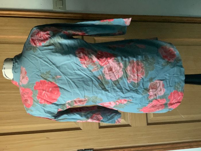 Blouse tunique bleu/gris fleuri rose taille 38/40 - photo numéro 3