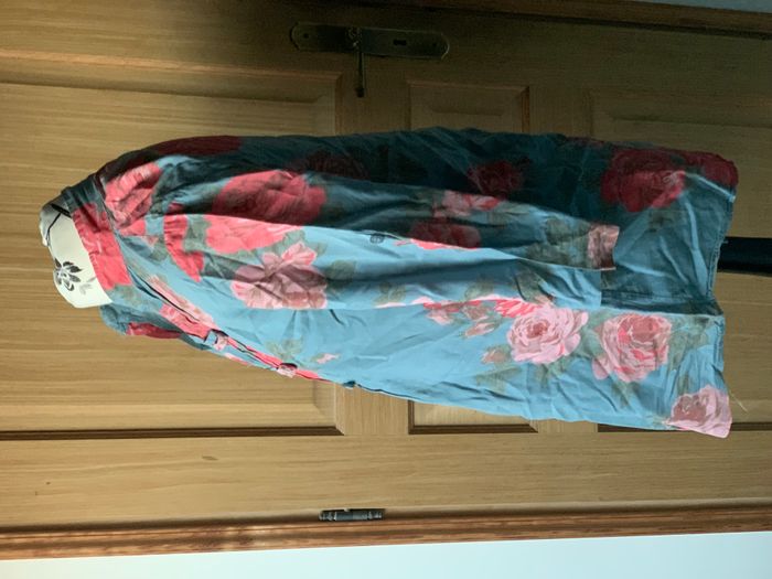 Blouse tunique bleu/gris fleuri rose taille 38/40 - photo numéro 2