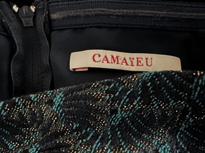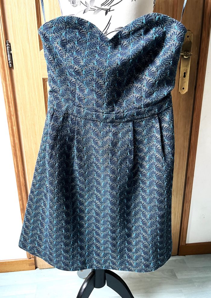 Robe bustier tissu épais motifs bleus et dorés Camaïeu taille 36/38 - photo numéro 5