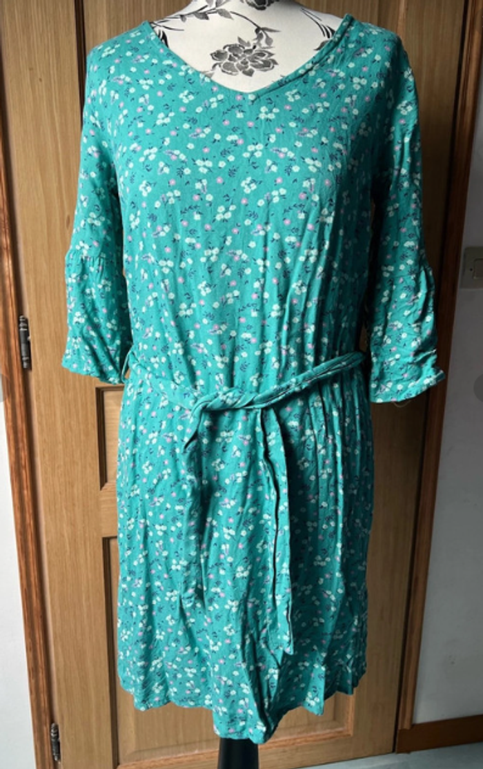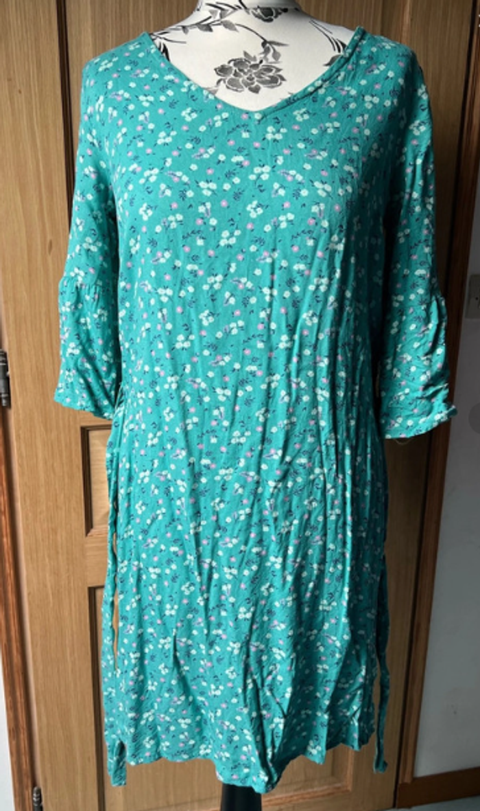 Robe droite turquoise fleurie Tissaïa taille 36/38 - photo numéro 2