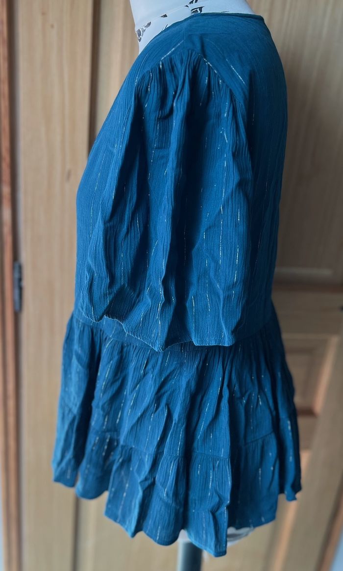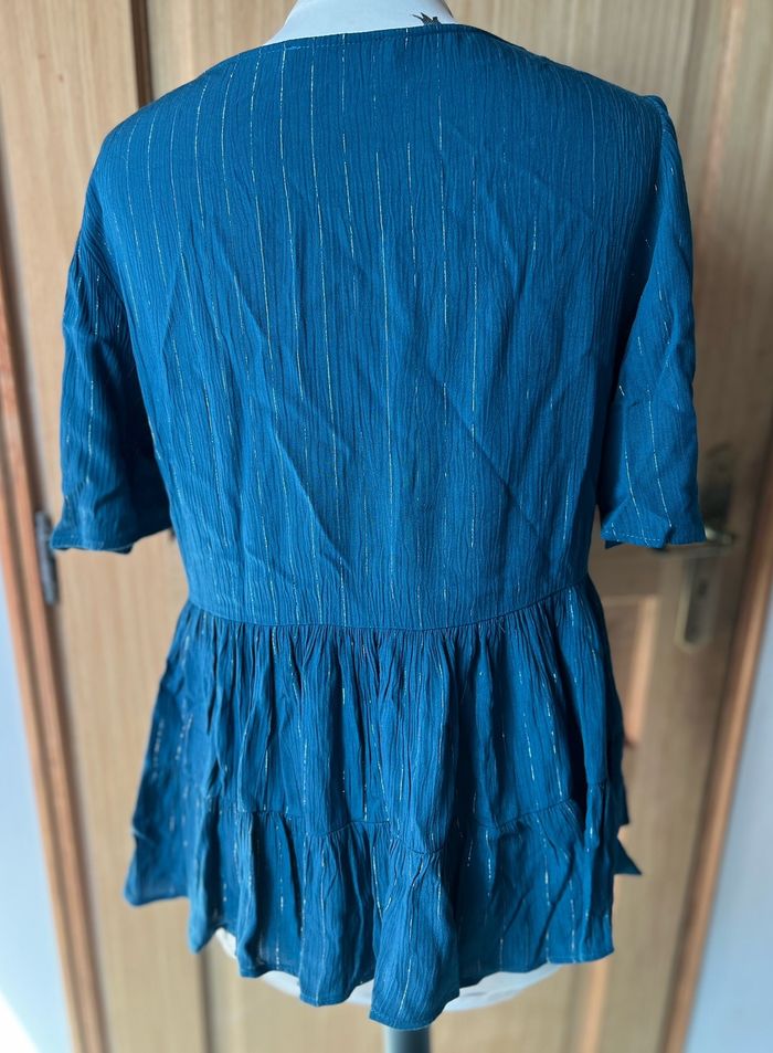 Blouse volantée bleu canard rayée argenté Promod taille 38/40 - photo numéro 4