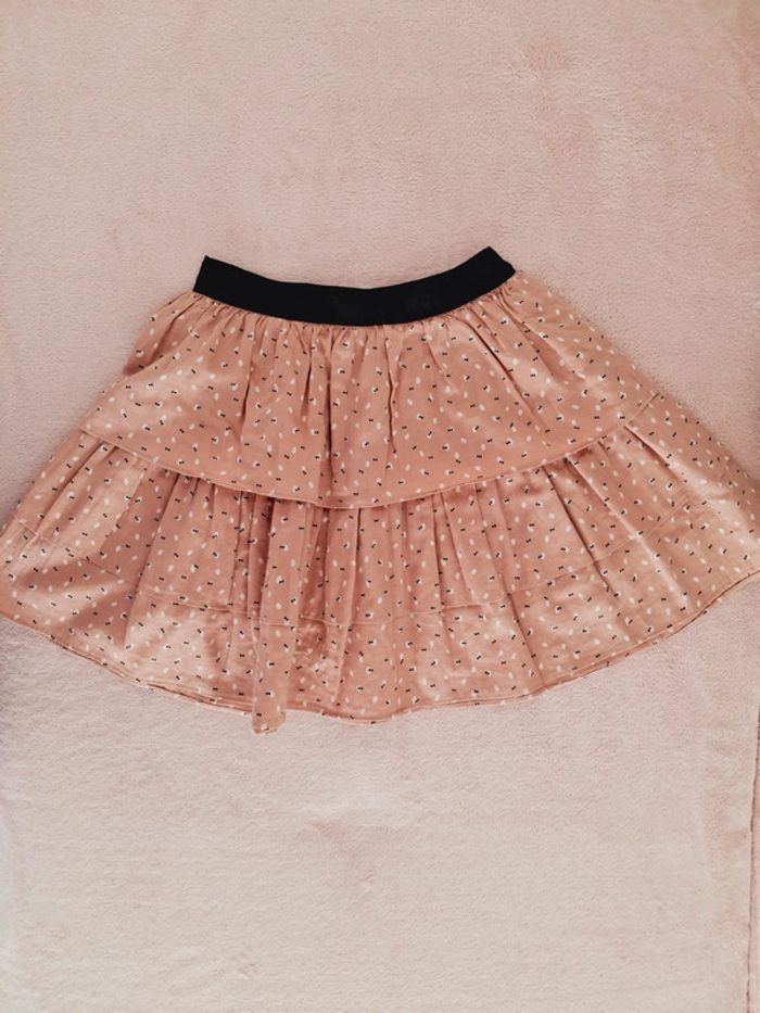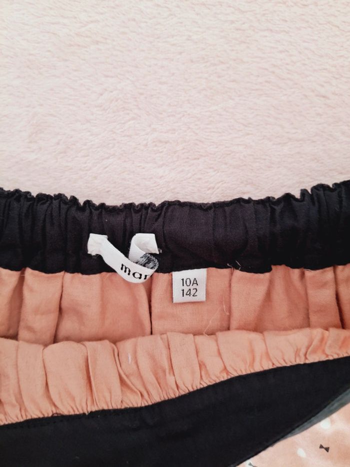 Jupe à volants Marese 10 ans Rose saumon Motifs : petits nœuds noirs et petits ronds blanc Taille élastiquée 100% coton Très bon état #adelaide7624vetementsfille10ans